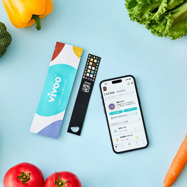 なんとなく続けている健康を意識した食生活や栄養管理。Vivooならそんな日々の食生活に関わる6つの項目の栄養状態などを手軽に確認することができます。また人工知能と高度な画像処理技術で自動的に分析することで、照明などの影響を受けにくく安定したテスト結果を提供します。
