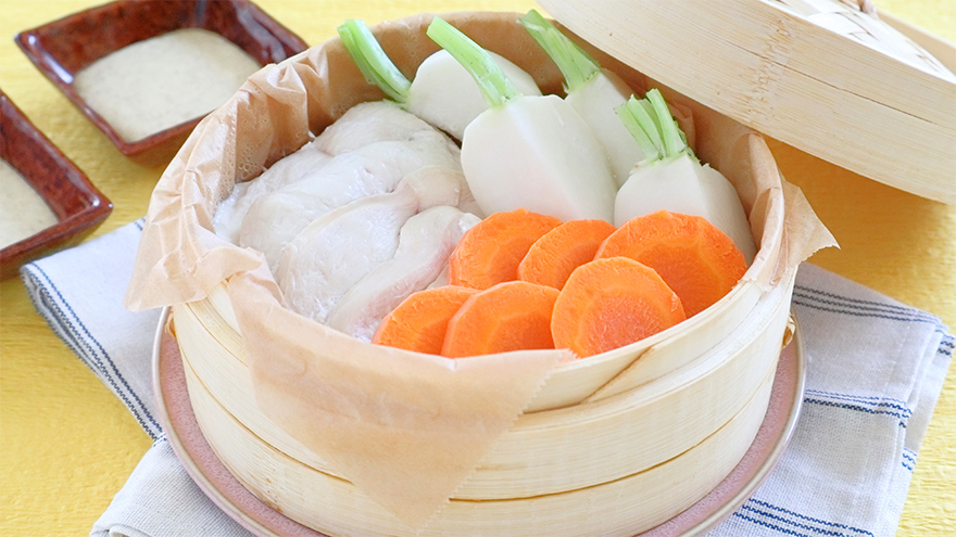 野菜の甘みを楽しめる「鶏肉と秋野菜のせいろ蒸し」