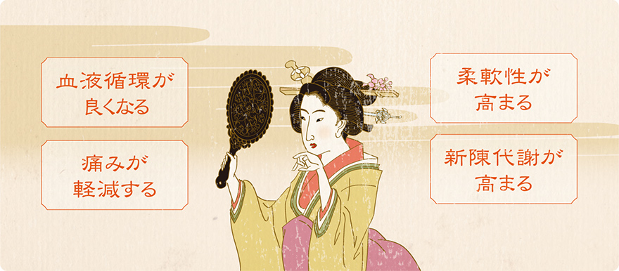 お風呂に入ると「温熱作用」が発動します。血液循環がよくなることで、身体の隅々に酸素と栄養が行きわたり、老廃物が排泄されます。この他にも期待される温熱効果がたくさん!