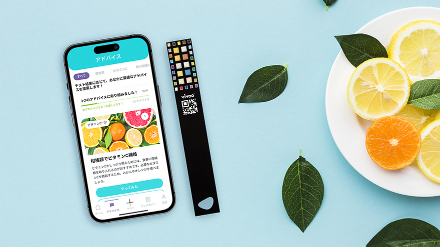 栄養モニタリングサービス「Vivoo」の特長を活かし、日々の健康的な生活習慣のサポートに役立てていきましょう。