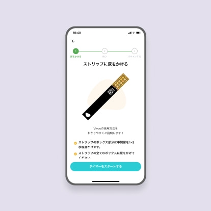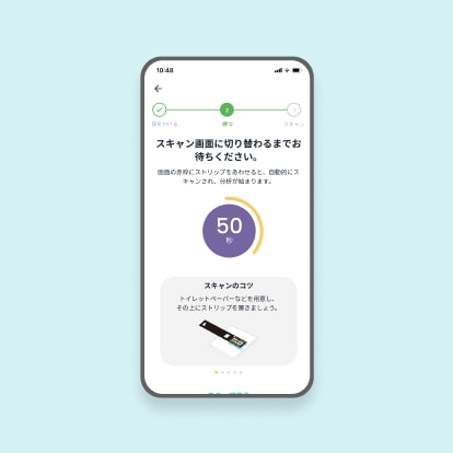 ストリップに尿をかけたら、タイマーをスタートしてください。正しく測定するために90秒間しっかり待ちましょう!待っている間は、スキャンのコツを確認してテストに備えましょう。