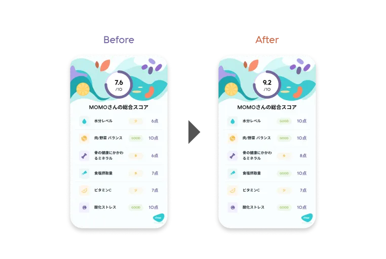総合スコア7.6点から食生活を見直すことで9.2点までアップ!