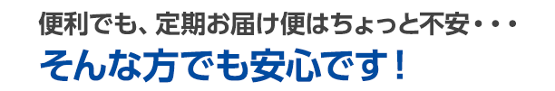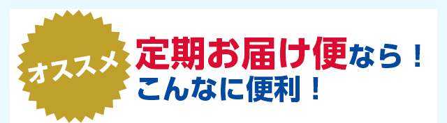 「定期お届け便」なら、買い忘れもなくタイミング良く商品が届くのを待つだけで、 とっても便利です。
