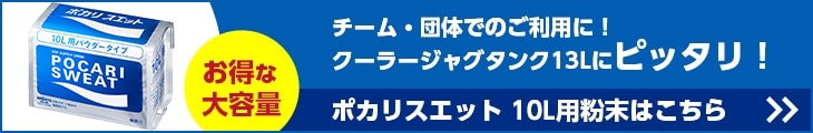 ポカリスエット10L用粉末に最適なジャグタンク。断熱材を使用しており、スポーツシーンや野外イベントなど、様々な場面での熱中症対策に活躍します。