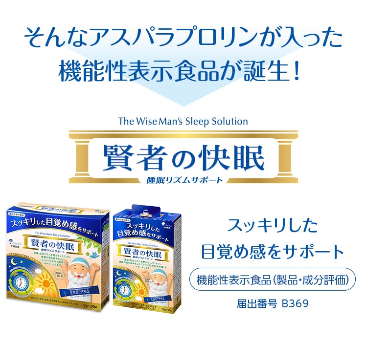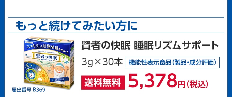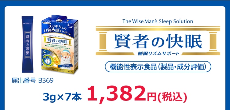 賢者の快眠 睡眠リズムサポートは機能性表示食品(製品・成分評価)です。(届出番号:B369)