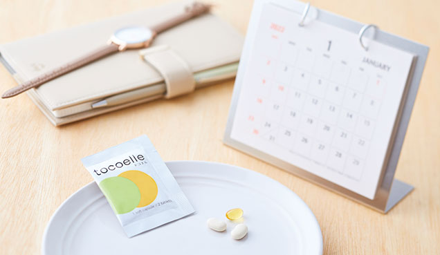 お客様の生活習慣に合わせて、月経前から1日1袋(3粒)を目安に摂取いただくことをお勧めしています。