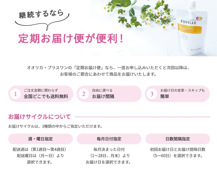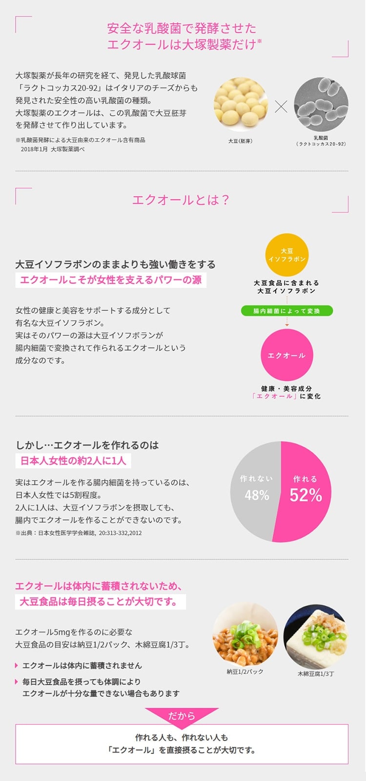 ●本品のS-エクオールと大豆イソフラボンの総量をご確認頂き、イソフラボンを含有する他の特定保健用食品などとの併用で過剰な摂取にならないようにご注意ください。