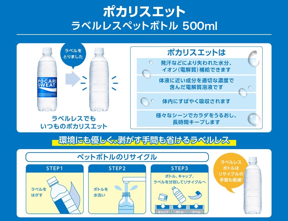 ラベルを剥がす手間が省けて、リサイクルしやすい。便利でエコなラベルレス。