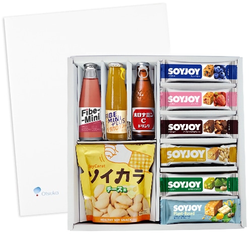 健康をサポートする飲料と、ソイジョイ・ソイカラの詰め合わせセットです。