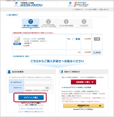 既にオオツカ・プラスワン会員のお客様は、お支払い方法選択時に、Amazonペイメント決済を選択することができます。 当サイトへログインの上、購入手続きへ進んでください。