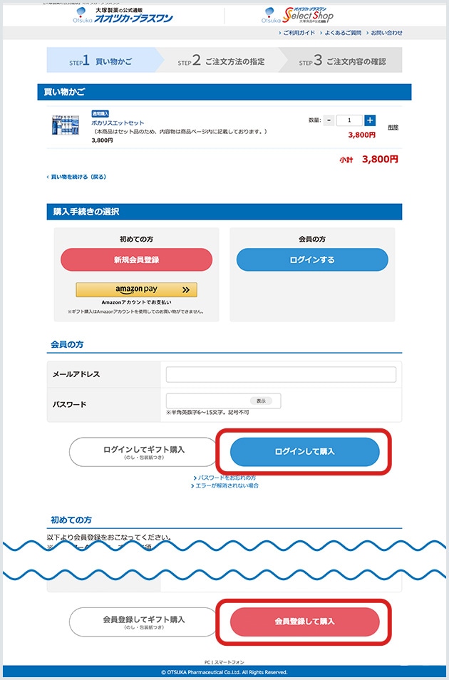 買い物カゴの確認商品を買い物カゴに入れてご購入手続きへ進んでください。