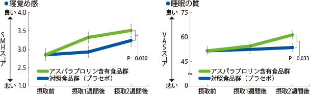 これらの結果から、アスパラプロリンは“平日と休日の就寝・起床時刻のズレ”によって生じる休日明けの不調の解消に役立ち、朝のすっきりとした目覚めを実現する可能性が示されました。