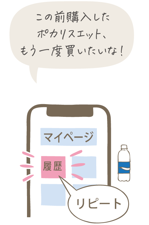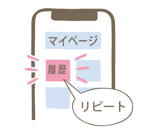 過去の購入履歴が確認できるので、リピート購入もスムーズ!お電話やハガキで購入した商品も確認できます!