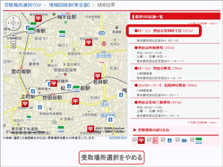 お受け取り場所の選択