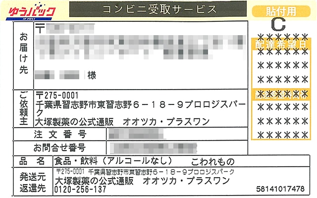 「コンビニ・郵便局窓口受け取りサービス」にて商品をお受取りいただく場合、