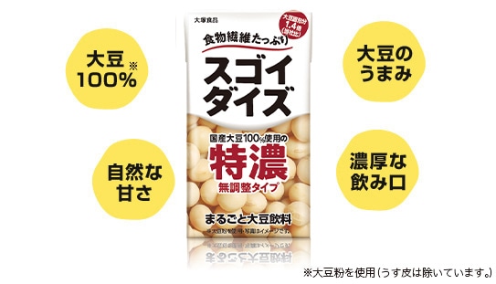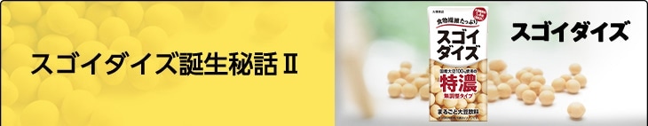 スゴイダイズは、開発のきっかけにもなった「大豆にはいろいろな健康効果があってスゴイ!」という思いをストレートに商品名にしました。