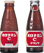 オロナミンCを象徴する独特な形状の茶色のびん。