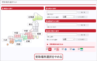 受け取り場所を変更する場合は、「受取場所を再選択する」をクリックして再選択してください。