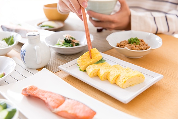 無理なく植物性食品を摂取するなら、やはりオススメは一汁三菜の和定食。白米などの主食に、肉類や魚介類、卵、大豆などのタンパク質がメインとなった主菜、野菜やキノコ、海藻などを使った副菜と汁物を組み合わせた献立が理想です。